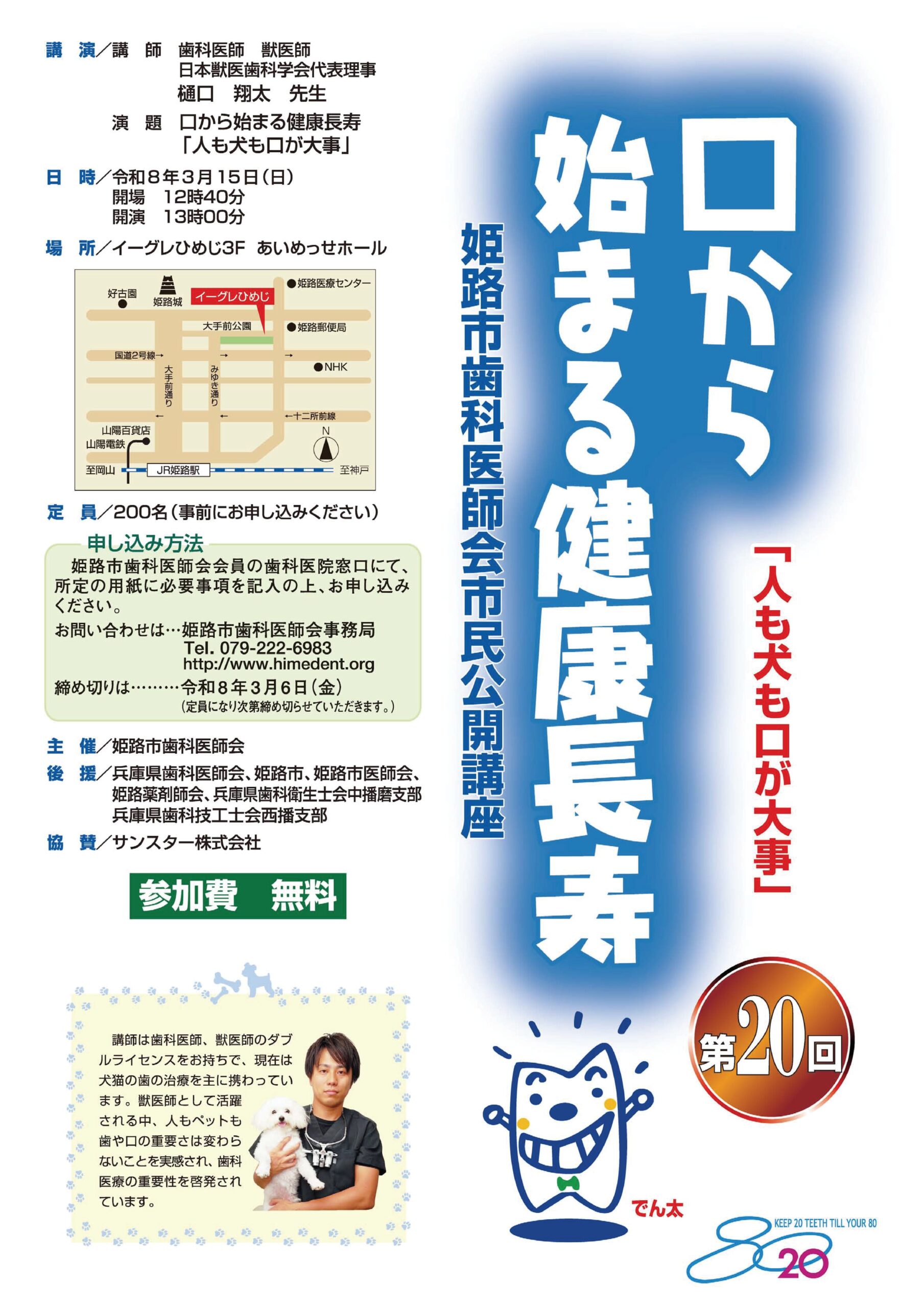一般社団法人姫路市歯科医師会の第20回市民公開講座を開催いたします。